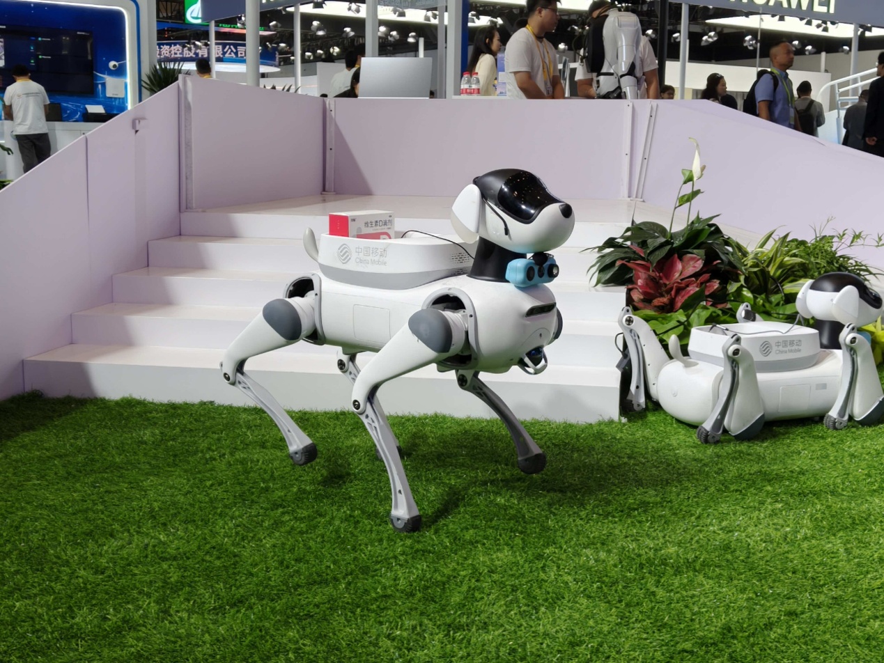 消博會上展示的中國移動機器狗。圖源:中國國際消費品博覽會組委會網上新聞中心