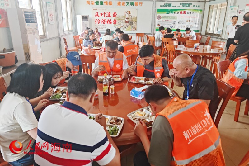 海口市龍華區中山街道食堂為社區工作者提供了豐盛的餐食。 人民網 枉源攝