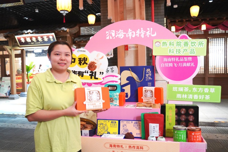 人民網海口9月13日電(枉源) 金秋時節,月滿人團圓。9月13日,“久久不見·九九見”海南特禮品鑒暨自貿騰飛·月滿獻禮新品推廣會在海口東坡老碼頭拉開帷幕。本次活動集中展示了來自海南全省的豐富物產與文化創意,並以“海南特禮”為核心,推出多款聯名中秋禮品,為市民和游客帶來一場融合瓊港風情的中秋味覺體驗。
