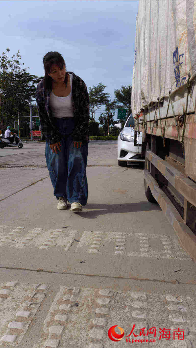 今年三月,婁玉霞載著4.2噸鮮果駛往五指山,成箱青果壘成小山,后輪突發的爆裂聲讓貨車瞬間“瘸腿”。車上有貨無法自換備胎,她果斷鎖死車門呼叫救援,等待三小時花費八百元換胎,她卻說:“方向盤上擔著別人的貨,更擔著自家的天。”