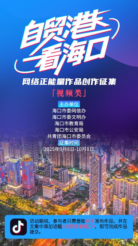 主辦方表示,此次延長征集時間,旨在借著國慶中秋假期,鼓勵更多網友深度探訪海口,以創作者的視角,挖掘海口在自貿港建設、文旅融合、城市發展等方面的亮點,創作出更具真情實感、更富傳播力的網絡正能量作品。