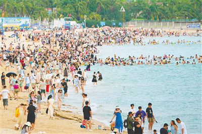 近日,在三亞大東海旅游區,眾多國內外游客前來游玩度假,在碧海藍天間樂享愜意假期。