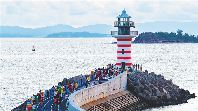 清水灣燈塔成為打卡拍照勝地。海南日報全媒體記者 王迎春 通訊員 趙晨陽 攝
