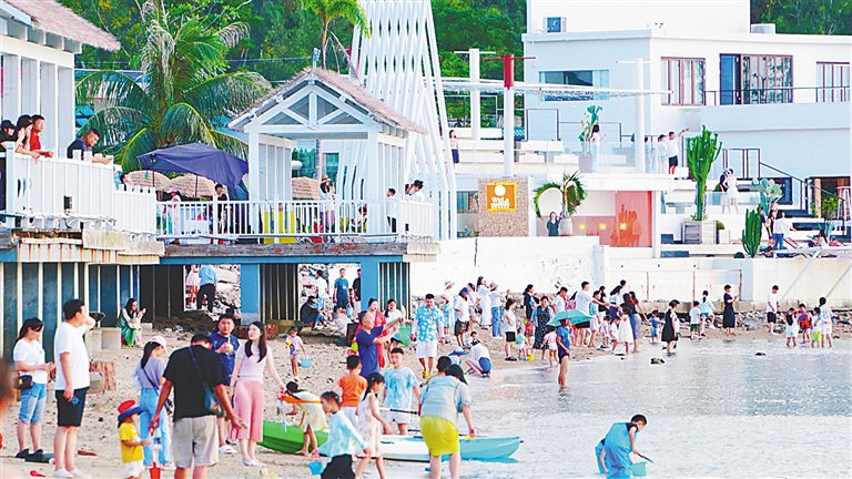 此外,陵水各具風情的灣區,同樣成為游客心之向往的度假勝地。在陵水清水灣,“會唱歌的沙灘”、自由燈塔等成為旅拍打卡的標志。游客既可體驗沖浪、帆船、浮潛等動感項目,也可在海邊吧台小坐發呆,盡享海風的治愈與自由。