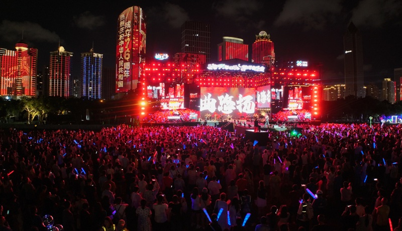 國慶假期的海口,文化氛圍格外濃郁。作為2025海口藝術周的亮點活動,2025“夸下海口”草坪音樂會在萬綠園盛大開啟,首日“華語嘉年華之夜”以時代金曲引發全場共鳴,當《我和我的祖國》旋律響起,萬人同聲合唱,將現場氣氛推向高潮。夜幕下,近千架無人機編隊表演點亮夜空,繪就“祝福祖國”等璀璨圖景,成為社交媒體熱門話題。據統計,截至目前草坪音樂會吸引約17萬名市民游客現場觀看。據了解,2025“夸下海口”草坪音樂會還將持續至10月11日,每天19:30-22:30准時在萬綠園上演。
