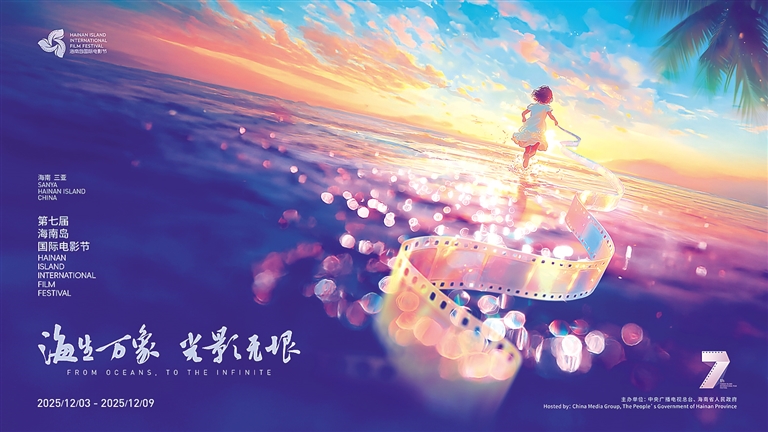 發布會上還公布了本屆電影節的主視覺海報,海報中小女孩手持膠片在海面奔跑的奇幻場景,呼應海南自由貿易港開放包容的海洋特質,象征電影藝術如潮水般浸潤生活,激發無限可能的美好願景。