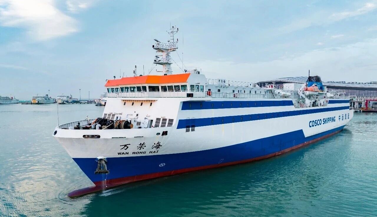 “萬榮海”輪的投入運營,進一步優化了航線運力結構。該輪總噸位11585噸,具備裝載量大、航行穩定、裝卸高效等優勢,單次可搭載140輛小汽車或40輛13米貨車,能匹配冷鏈生鮮、建材農資、工業原料等多品類貨物的運輸需求。首航當日,船舶貨物艙與汽車艙均滿負荷運轉,實現了車貨滿載的開門紅,彰顯了航線對兩地企業的強大吸引力。