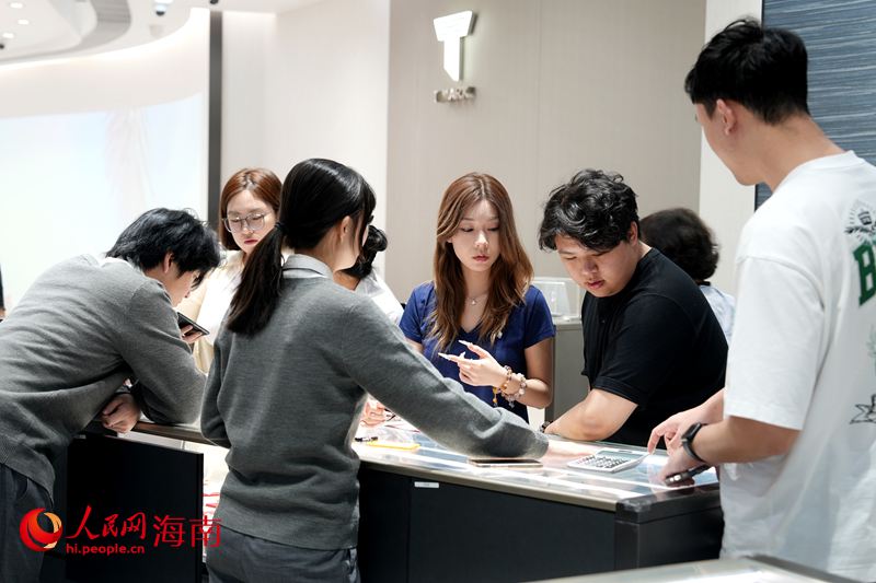游客在免稅城購買首飾。人民網記者 符武平攝