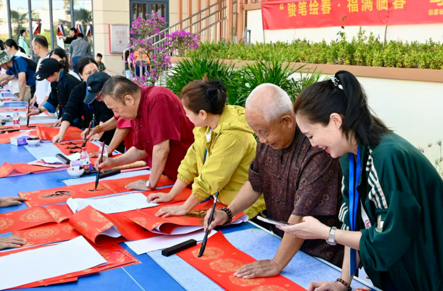 三亞吉陽區臨春安置區開展寫福送福活動。實習生馬寧紫攝