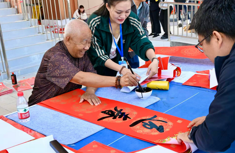 “拿著手寫的福字,才真正有過年的感覺。”村民林皇海接過一副春聯,笑著說道。他仔細將春聯撫平疊好,“社區想著我們,送福又送健康,這個年過得踏實又暖心。”