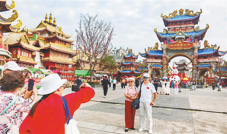 2月17日,大年初一,儋州市海花島童世界張燈結彩,年味十足,眾多市民游客前來游玩,開啟新春歡樂之旅。圖為游客在打卡拍照。海南日報全媒體記者 陳元才 攝