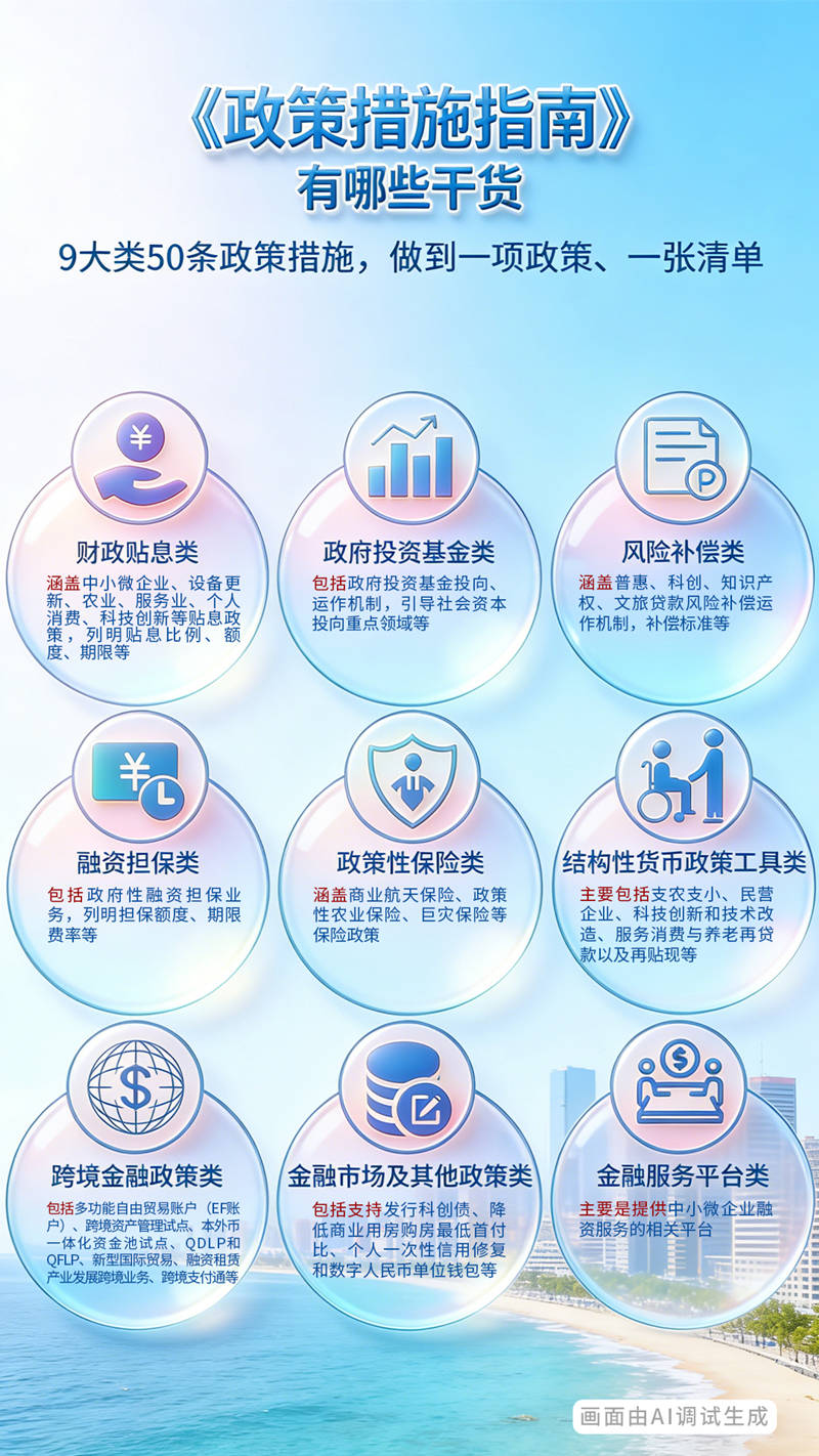 收藏近日,海南梳理編制了《財政金融協同惠企利民政策措施指南》(以下簡稱《政策措施指南》),通過央行貨幣政策工具、財政貼息、融資擔保、風險補償等多種工具協同發力,全力服務實體經濟、溫暖民生福祉,為海南自貿港建設和經濟社會高質量發展注入澎湃動力。這份《政策措施指南》究竟藏著哪些“干貨”?又是如何給各類經營主體和廣大群眾帶來“真金白銀”的福利禮包?一張圖帶你看懂——