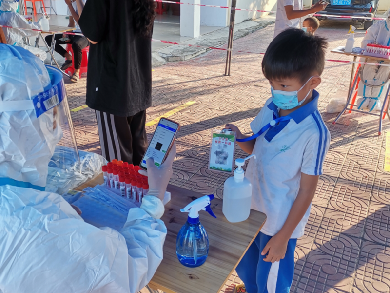 “你好,这是村委会为你们定制的‘核酸一码通’吊牌,请收好,以后每次做核酸时记得带上。”9月13日,在三亚市崖州区三公里村核酸检测现场,三公里村志愿者为老年人、儿童发放“核酸一码通”吊牌,解决这部分群体无法使用智能手机采集信息的瓶颈。