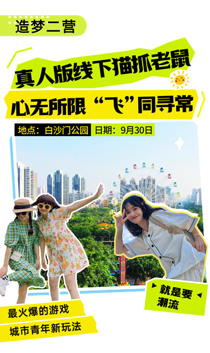 10:00-11:30 真人版线下猫抓老鼠16:30-18:30 心无所限“飞”同寻常——飞盘+露营+乐队表演