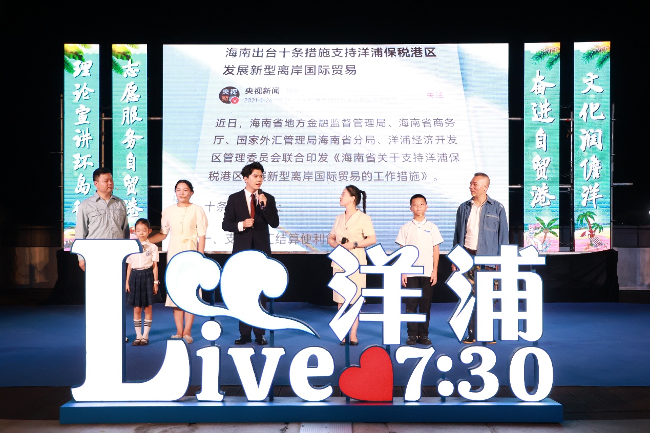 人民网儋州8月23日电 (记者李学山)在海南自贸港进入成型起势、即将全岛封关运作的关键时期,为进一步推动海南自贸港政策深入人心,营造全社会支持参与海南自贸港建设的浓厚氛围, 8月21日晚,“自贸港之声”宣讲志愿服务队走进儋州市洋浦滨海文化广场举办“奋进自贸港 文化润儋洋”主题宣讲活动。
