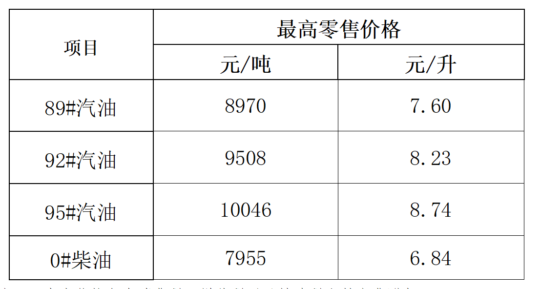 4.表中每升汽油含1.05元车辆通行附加费,0号柴油未含车辆通行附加费。