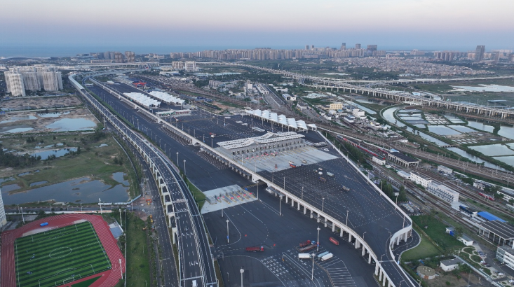 作为海南自由贸易港口岸建设“十四五”规划重点项目,海口“二线口岸”项目总建筑面积23.37万平方米,相当于33个标准足球场,南北绵延2.4公里,东西横跨1.5公里,是新海港和铁路南港出岛货车的统一查验通道。按照设计要求,可满足年离岛货车172万辆次、货物吞吐量4400万吨的通关需求,将极大提升口岸通关效率与服务能级,为港城深度融合发展注入强劲动能。