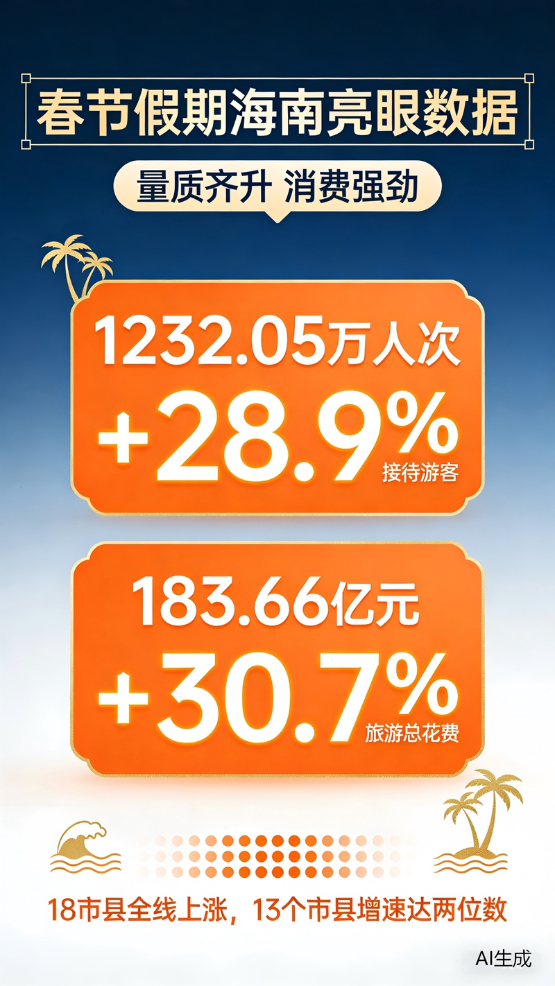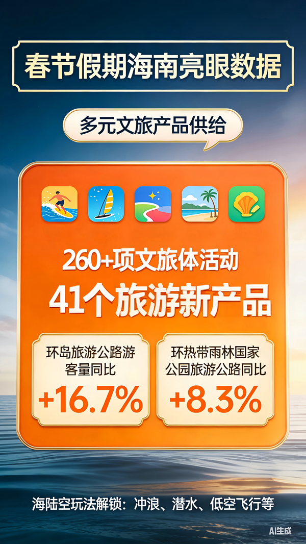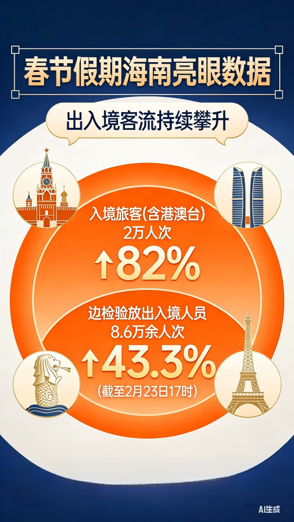 收藏南海之滨,全岛封关运作后的海南自由贸易港活力迸发。2026年春节(2月15日—23日,9天假期),海南依托政策红利、多元供给和优质服务,实现文旅消费、入境旅游、交通出行全方位升温,“到海南过春节”成为中外游客新选择,全域旅游彰显强劲韧性与活力。一组数据,看见自贸港开放热度。