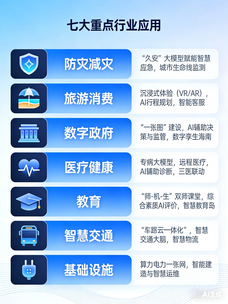收藏近日,《海南省推动“人工智能+”行动方案(2026—2028年)》正式发布,方案明确提出“4 + N”场景攻坚方向、双核驱动布局以及七大重点行业应用规划。三年之后,海南的AI产业版图将会呈现出怎样一番景象?一组图片,为您解读。